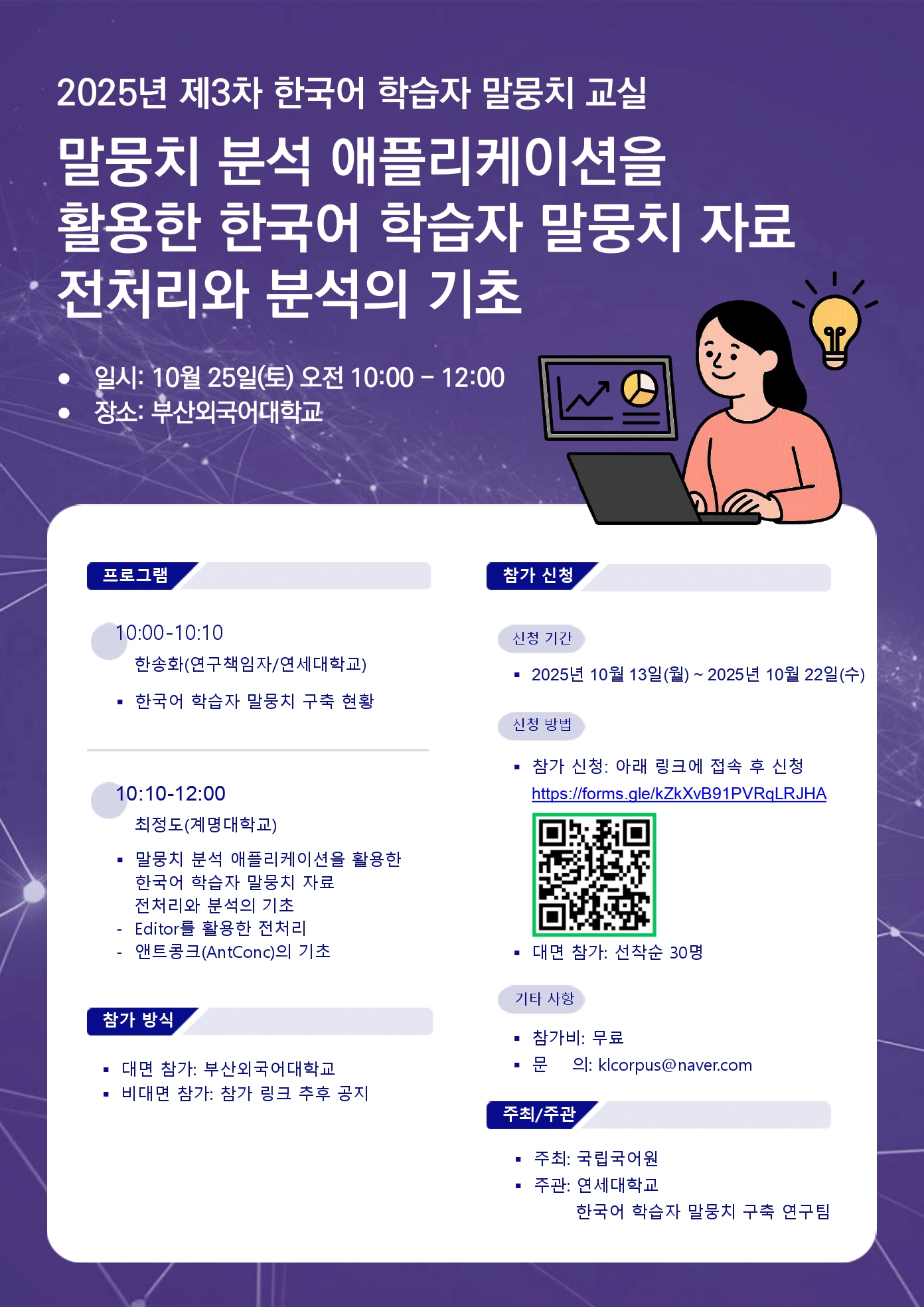2025년 제3차 한국어 학습자 말뭉치 교실 참가 신청 안내