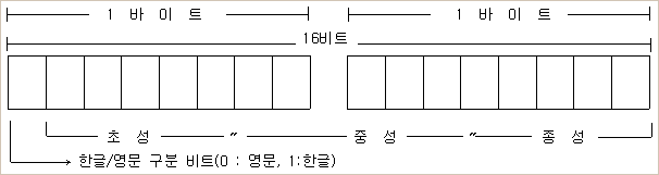 그런데 같은 2-바이트 조합형 한글 코드이면서도, 업체마다 초성.중성.종성에 부여되는 코드 값을 달리하여 서로 호환이 되지 않는다. 업체별 조합형 한글 코드의 현황은 다음과 같다.