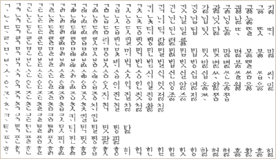폰트 번호 | 글자 수 | 폰트 내용 | 학회 표준 폰트 | (자수) | 추가 여분 |