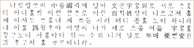〔그림 12〕 키보드에서 처리 가능한 고어 출력 보기 | 〔그림 13〕 키보드와 폰트 고어를 섞어 쓴 고어 출력 보기 |
