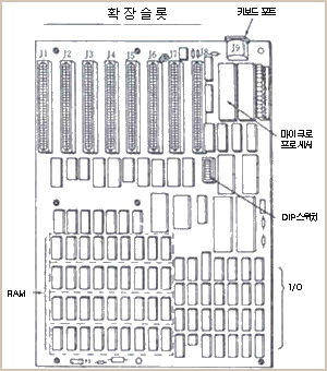 〔그림 3〕IBM PC XT 시스템 보드 배치도 |