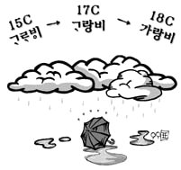 그러면 ‘가랑비’는 어떤 비일까? ‘가늘게 내리는 비’라는 정도만 알 수 있을 뿐 그 유래가 쉽게 떠오르지 않는다. 그러나 ‘가랑비’의 15세기 어형을 잘 분석해 보고 사용 예를 찬찬히 살펴보면 ‘가랑비’의 명명의 근거와 그 유래도 어렵지 않게 밝혀진다.