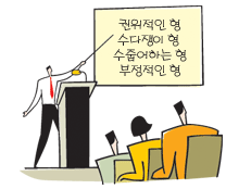 권위형 스타일은 상대를 배려하기 보다는 명령형으로 이야기 하려고 한다. 남성의 경우 권위적인 스타일이 많다. 이런 경우는 보다 부드럽게 표현할 필요가 있다. 그러므로 명령형보다는 청유형으로 표현하는 것이 좋다.