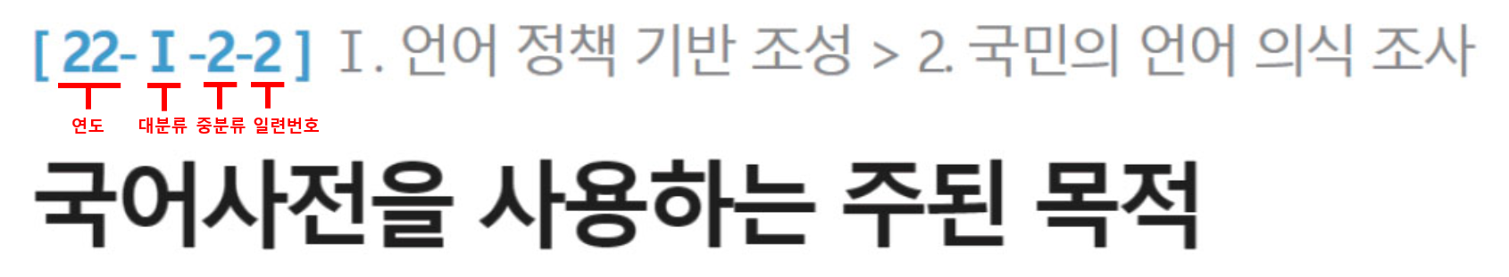 국립국어원의 ‘숫자로 살펴보는 우리말’ 누리집에서는 자료마다 공공누리 유형(제1유형~제4유형)을 표시하고 있습니다. 이용자들께서는 표시된 공공누리 유형에 맞추어 자료를 활용하시기 바랍니다.
